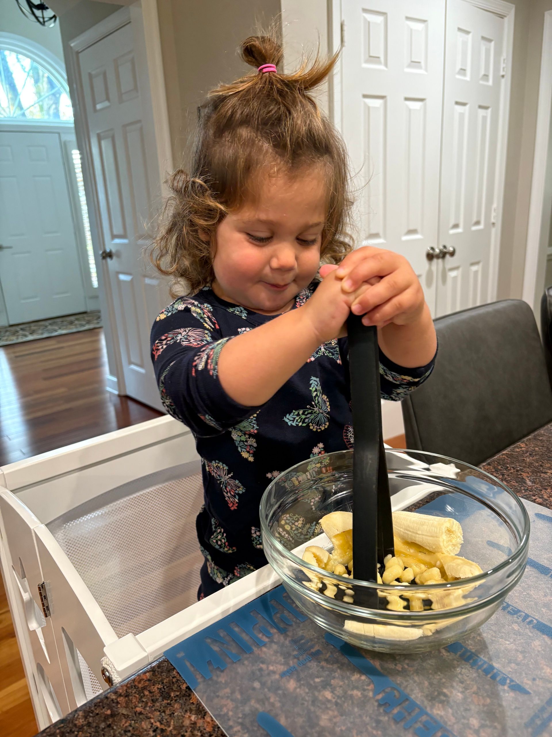 18+ months: Toddlers can enjoy most Thanksgiving foods with continued supervision. Avoid items like loose bones or firm, round foods that still pose a choking risk. Keep pieces appropriately sized and support calm, seated eating. This is also a fun age to get them involved. Let them help set the table, stir batter, or toss the salad. Participating in the meal often increases their interest and willingness to try new foods.